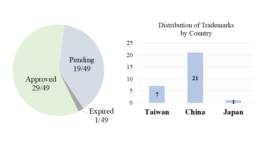 1. To protect the Company's brand image, trademarks have been registered in major markets such as Taiwan, Japan, and China.