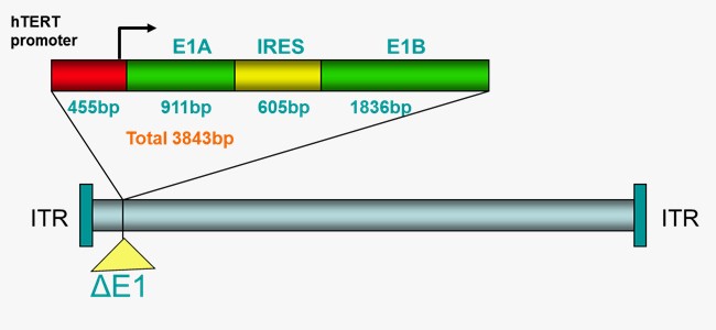 OBP-301 (Telomelysin)是经过基因修饰的第5型腺病毒(Adenovirus)的溶瘤病毒治疗药物,主要针对癌细胞作用而不伤及正常细胞,因此它可以选择性地在癌细胞内复制,造成癌细胞的溶解,进而达到杀死癌细胞的目的。