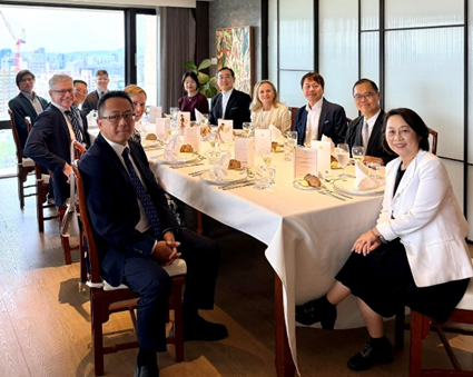 圖1: 澳洲駐台代表馮國斌先生、Sharon Lewin 教授及張世忠董事長等人餐敘交流。
